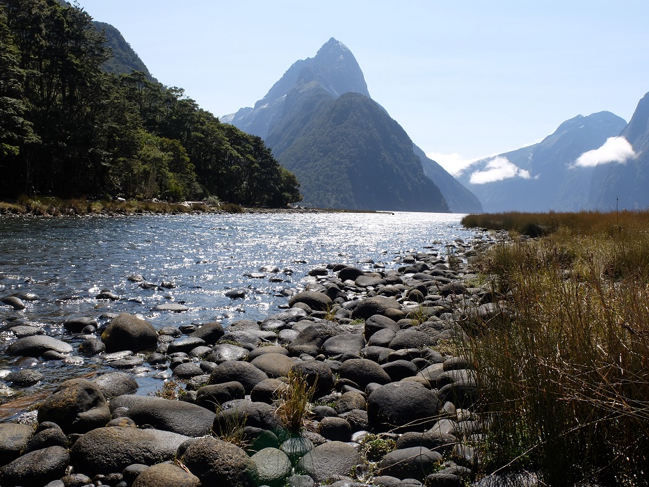 We continued through Queenstown on Highway 6 via the lakeside town of Te Anau and deep into the Fiordland National Park. The final stage of the journey was along The Milford Road a spectacular drive with some exciting hairpin bends and the 1.2km long Homer Tunnel. Around every corner and through every pass the scenery became more and more stunning with terminal moraines and scree-slopes to U shaped and hanging valleys, waterfalls and snow-peaked mountains. It was a glacial geographer’s delight!