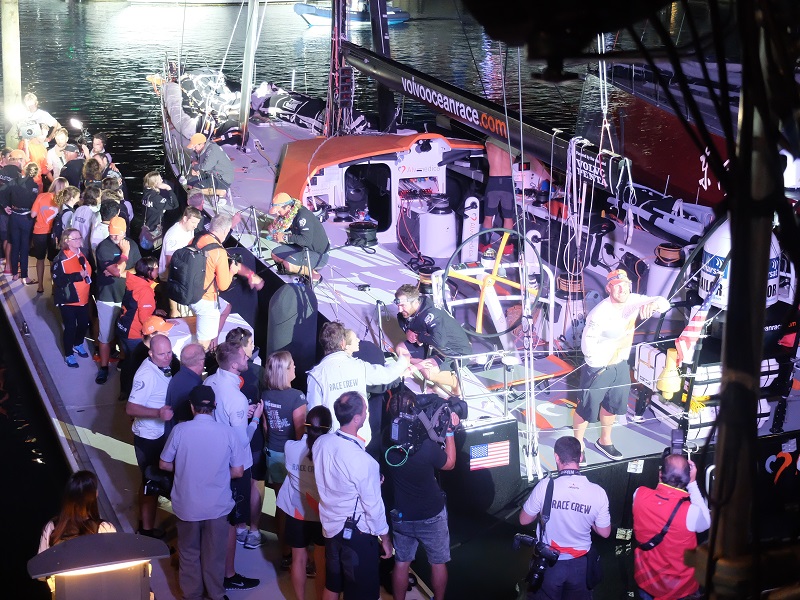 I made my way down to the Viaduct and found a really lovely restaurant on the quieter side of the Viaduct. After dinner I walked over to the Volo Ocean Race village to watch the boats come in. I’d missed the first boat to arrive, the Spanish boat MAPFE, but stayed for a good couple of hours and saw the second, third and fourth boats arrive. There was a great atmosphere in the race village and it was a really well produced event with interviews with the crew and their families and lots of loud music and cheering to welcome the boats when they arrived.