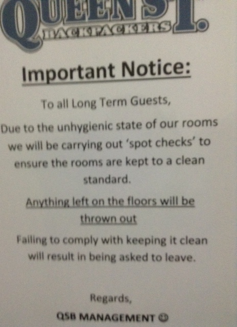 I had a night in Auckland before meeting up with Mum and Dad again for our journey back to Sydney. I’d been a little laid back in booking my accommodation and all the places that I wanted to stay were all fully booked. I hadn’t realised what a busy weekend in Auckland it was as the boats from the Volvo Ocean Race were due in and New Zealand were playing Australia in the Cricket World Cup! The only place that had any availability was a backpackers just off Queen Street in the city. The place had some pretty terrible reviews on all the hostel sites and I set my expectations extremely low! I was greeted in the room by a sign that actually acknowledged that the rooms were unhygienic! The room was stinkingly hot and noisy. The sports bar next door was already full of loud, pissed and pissed off Australians who had just lost the cricket to the NZ Black Caps! There were beer bottles and empty pizza boxes in the hallway and the carpets were slightly sticky. I changed quickly, stashed my stuff and got out of there.