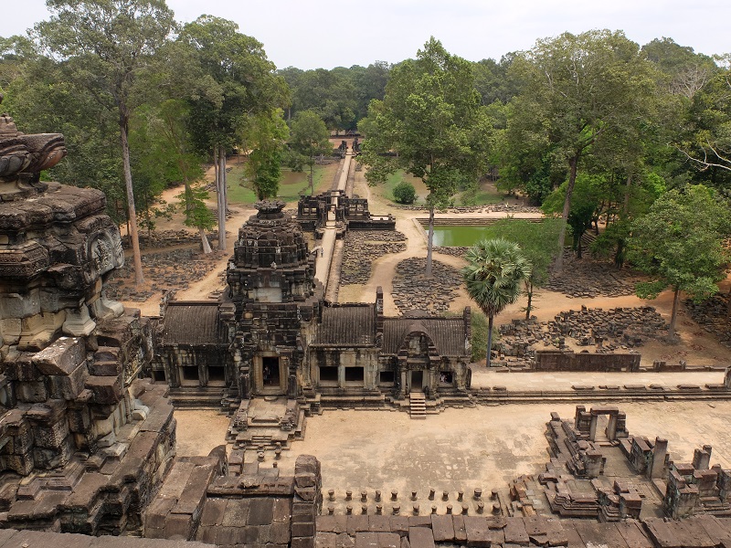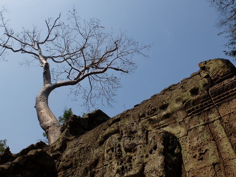 After a much needed lunch break in some welcome shade we moved on to Angkor Thom, the last great capital of the Jaavarman VII’s Khmer empire. Established in the late 12th century Angkor Thom consists of a number of different temples and structures over an area of 9 square kilometers and includes the Bayon shrine. We explored the different temples and buildings and ended our tour walking along the Terrace of Elephants, a 350 meter long structure used as a giant viewing platform for the King’s public ceremonies and audiences.