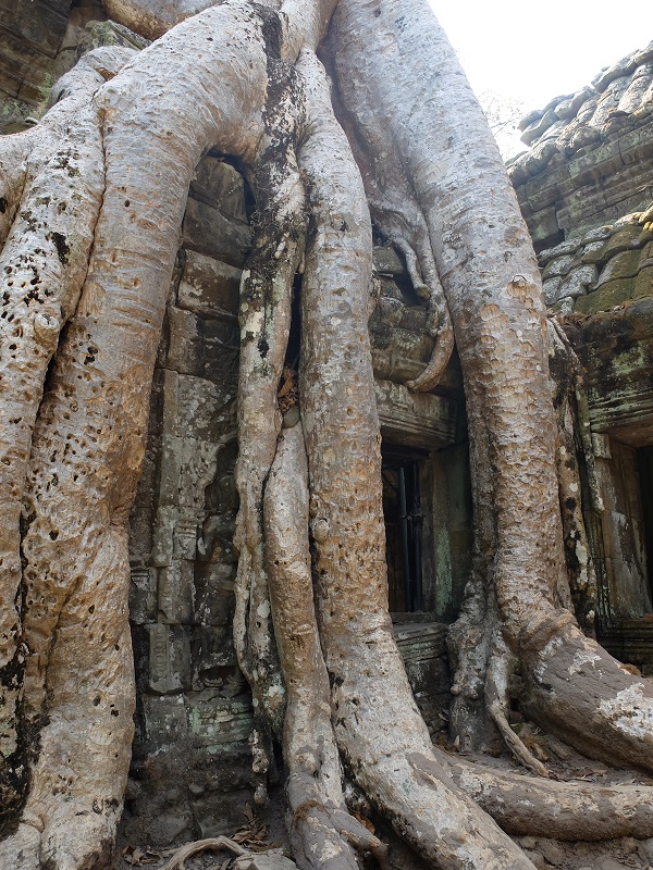 Next stop was Ta Prohm, otherwise known as ‘The Tomb Raider Temple’. Ta Prohm was built in the late 12th century by King Jayavarman VII as a Buddhist monastery and university. The site is renowned for the fact that nature has taken over, trees, tree roots and other vegetation intertwine with the temple buildings. There was a great deal of restoration happening at the time and many areas of the temple were inaccessible due to the work. The conservation teams have the tricky task of balancing the onslaught of nature, which is a key draw card for the tourists, without compromising the health of the temple buildings. We wandered between the buildings, through the narrow corridors and clambered over rocks and ruins. Even with hoards of tourists, of which I was obviously one, you can’t help but love this atmospheric and beautiful place.