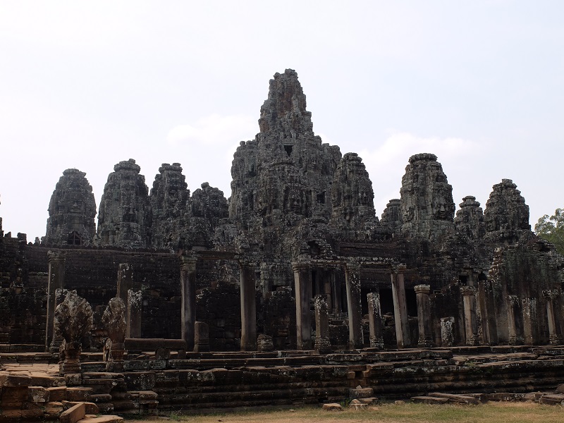 Onwards, in the heat, to Bayon. What a unique and magnificent structure! 216 carved faces stare out at you from this Buddhist shrine. According to some scholars the faces are of the Buddha but others think that they could be of King Jayavarman VII himself, looking out over his people, reminding them of his might and power. Despite the intense heat we spent a lot of time here exploring the different faces and facets of this beautiful and unique shrine and taking lots, and lots of photos!