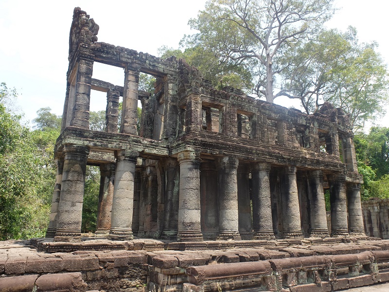 After stopping for a quick visit to Preah Neak Pean I rode onto Preah Khan a behemoth of a site built, once again, by Jayavarman VII. It was just after midday now and even having kept up my fluid intake – 6 liters of water at this point! – I was feeling a little weary and it didn’t help matters that I managed to get lost within the temple site and ended up exiting at a different entrance to the one that I arrived at. At first I thought that someone had pinched my bike and was confused at where all the food stalls had sprung up from before the penny dropped! I managed however to find the correct exit and hopped on my bike again and headed back towards Angkor Thom and Angkor Wat.