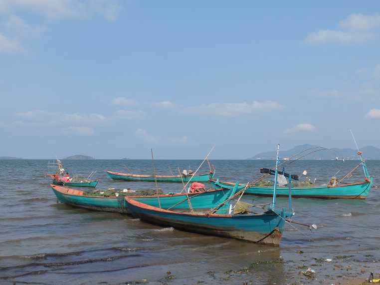 After a quick stop at a local village where we saw fisherman carrying out their daily routines of net mending and boat repairs we drove on to the temple caves. I was joined initially by two, then three, local kids who for a few dollars act as guides to the tourists through the caves.