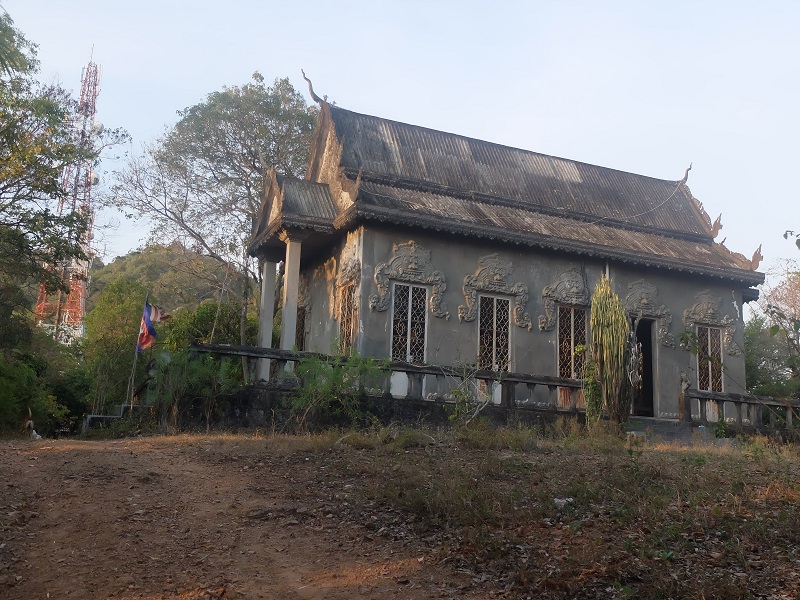 On my way however I did have a rather unsettling experience involving a dog. There are lots of dogs in Cambodia, the majority look fairly well looked after and won’t bother you. I was passing a temple about 15 minutes away from my final destination when a dog came running out from the temple grounds towards me barking aggressively. I assumed he’d give me a few cautionary barks and then leave me alone, but no, he seemed pretty annoyed that I was on his turf. He continued to bark, growl and bare his teeth. I kept walking, looking straight ahead and trying to keep calm as he weaved backwards and forwards across the path at my feet. “Good dog, nice dog, please go away dog” I sang gently under my breath! Finally after about 30 meters, which I tell you felt more like 100 meters, he stopped following me and trotted back into the temple. I thought for a Buddhist dog – my assumption as he had an orange scarf tied around his neck and came from the temple – he was pretty aggressive! With my heart still pounding I continued along the path to Sunset Rock. It was about 5:15pm now and the sun was getting low in the sky. My next dilemma; the path to Sunset Rock was becoming increasingly difficult and narrow. If I stayed to watch the full sunset I’d have to navigate my way back in the dark along the path, and the thought of meeting temple dog in the dark filled me with dread. So after spending two hours walking to the rock I spent less than two minutes there, took a couple of snaps and headed back. Temple dog greeted me again with the same amount of aggressive enthusiasm as before but again was all bark and fortunately no bite!