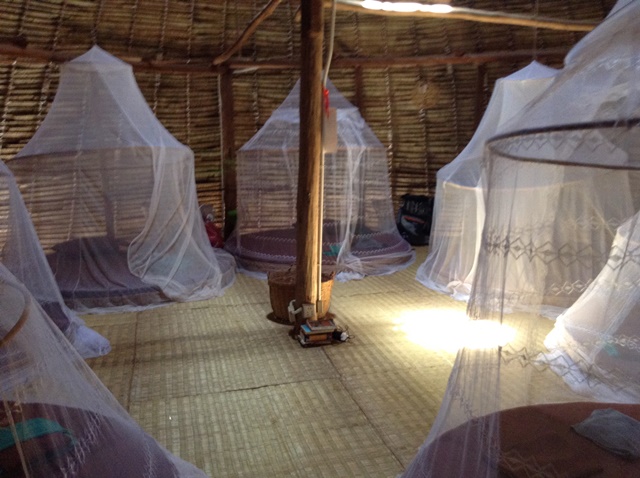 The island and Ten103 was a 45 min boat ride away and had no running water, limited electricity, no WiFi and a fair number of bugs. We couldn’t wait to get there! We were met off the boat by some of the team who ran the place, a very fun and friendly bunch of people. Our accommodation, ‘Crab Shack’, was a bamboo thatched bungalow on stilts located right on the edge of the beach and the jungle. The only drawback to this idyllic and isolated location was that it was about a 4 minute walk from the main bar area and the loos. We however quickly got used to the little trek back and forth along the jungle tracks and our fear of encountering any snakes eased with each trip.
